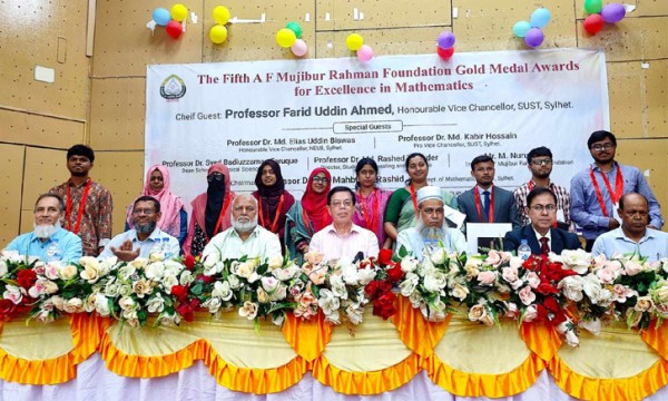 স্নাতক ও স্নাতকোত্তরে কৃতিত্বপূর্ণ ফলাফল অর্জনে এ এফ মুজিবুর রহমান ফাউন্ডেশন স্বর্ণপদক পেয়েছেন শাহজালাল বিজ্ঞান ও প্রযুক্তি বিশ্ববিদ্যালয়ের (শাবিপ্রবি) গণিত বিভাগের ১১ জন শিক্ষার্থী।