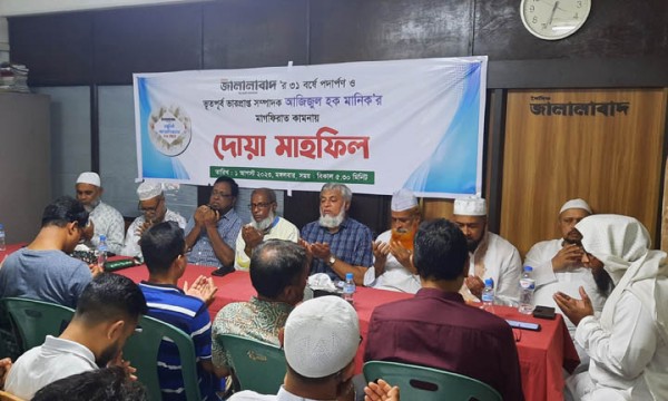 মঙ্গলবার (১ আগস্ট) বাদ আসর দৈনিক জালালাবাদ কার্যালয়ে এ মাহফিল অনুষ্ঠিত হয়। সম্পাদক মুকতাবিস উন নূরের সভাপতিত্বে এসময় বক্তব্য রাখেন, সিলেট মহানগর বিএনপির সভাপতি নাসিম হোসাইন, জামায়াতে ইসলামী সিলেট মহানগর আমীর ফখরুল ইসলাম, বাংলাদেশ খেলাফত মজলিসের কেন্দ্রীয় নায়েবে আমীর মাওলানা রেজাউল করিম জালালী, জালালাবাদ সিন্ডিকেটের ব্যবস্থাপনা পরিচালক অধ্যাপক আব্দুল হান্নান, দৈনিক সিলেটের ডাকের প্রধান বার্তা সম্পাদক এনামুল হক জুবের, সিলেট প্রেসক্লাবের সাধারণ সম্পাদক আব্দুর রশিদ মো. রেনু, দক্ষিণ সুরমা উপজেলা পরিষদের সাবেক চেয়ারম্যান মাওলানা লোকমান আহমদ, ইংল্যান্ড প্রবাসী কমিউনিটি ব্যক্তিত্ব ব্যারিস্টার মাওলানা আব্দুল মালিক, সিলেট বিভাগীয় ফটো জার্নালিস্ট এসোসিয়েশনের সভাপতি আব্দুল বাতিন ফয়সল, দৈনিক জালালাবাদের সহকারী সম্পাদক নিজাম উদ্দীন সালেহ, যুগ্ম বার্তা সম্পাদক আহবাব মোস্তফা খান। দোয়া পরিচালনা করেন কুদরত উল্লাহ জামে মসজিদের ইমাম ও খতিব মাওলানা সাইদ বিন নূরুজ্জামান আল মাদানী।