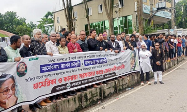 একাত্তরের ঘাতক দালাল নির্মূল কমিটি সিলেট মহানগর শাখা আয়োজিত মানববন্ধনে বক্তারা বলেন, ১৯৭৫ সালের ১৫ আগস্ট বঙ্গবন্ধু ও তাঁর পরিবারকে হত্যাকারীরা ইতিহাসের পাতায় চির কলংঙ্কৃত। ইতিহাসের এই কলঙ্কিত অধ্যায়কে মুছে ফেলার জন্য স্বীকৃত খুনীদের কঠোর শাস্তি হওয়া দরকার। যাতে করে আর কখনো বাংলাদেশের স্বাধীনতা ও সার্বভৌমত্ব হুমকির সম্মুখীন না হয়। বঙ্গবন্ধুর আত্বস্বীকৃত খুনী রাশেদ চৌধুরী বর্তমানে স্থায়ীভাবে আমেরিকায় ও নূর চৌধুরী স্থায়ীভাবে কানাডায় বসবায় করছে। এই খুনীদের বাংলাদেশ সরকারের কাছে ফিরিয়ে দেয়ার জন্য বাংলাদেশে অবস্থিত আমেরিকা ও কানাডার হাইকমিশনে নিযুক্ত রাষ্ট্রদূতদের মাধ্যমে সে দেশের সরকারের কাছে জোর দাবি জানাচ্ছি।