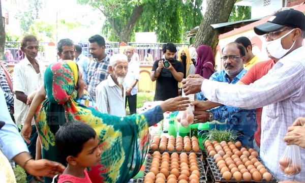১০ টাকার মধ্যে ডিম ও দুধ পেয়ে খুশি সুবিধাবঞ্চিত মানুষেরা।