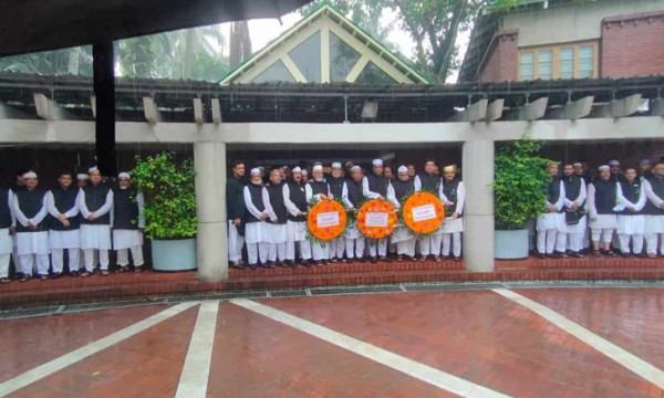 এরপর তারা জাতির জনকের মাজারে পুষ্পস্থবক অর্পন করেন। পরে তারা জাতির জনক বঙ্গবন্ধু শেখ মুজিবুর রহমান, বঙ্গমাতা শেখ ফজিলাতুন নেছা মুজিবসহ ১৫ আগস্টের সকল শহীদের আত্মার মাগফেরাত এবং দেশ ও জাতির কল্যাণ কামনা করে বিশেষ মোনাজাত করেন। তারা প্রধানমন্ত্রী ও আওয়ামী লীগ সভাপতি শেখ হাসিনা এবং জাতির জনকের আরেক কন্যা শেখ রেহানার সুস্থতা এবং দীর্ঘায়ু কামনা করে বিশেষ মোনাজাত করেন। নেতৃবৃন্দ মাজার কমপ্লেক্সের মসজিদে পবিত্র জুম’আর নামাজ আদায় করেছেন।
