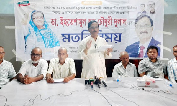 বাংলাদেশ মেডিকেল এসোসিয়েশন (বিএমএ)’র মহাসচিব, বাংলাদেশ আওয়ামী লীগের স্বাস্থ্য ও জনসংখ্যা বিষয়ক উপকমিটির সদস্য, আসন্ন জাতীয় সংসদ নির্বাচনে সিলেট-৩ আসনে আওয়ামী লীগের মনোনয়ন প্রত্যাশী ডা. ইহতেশামুল হক চৌধুরী দুলাল বালাগঞ্জ উপজেলায় কর্মরত সাংবাদিকদের সাথে মতবিনিময় সভা করেছে।