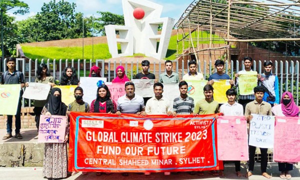 জলবায়ু সুবিচারের দাবিতে দেশের বিভিন্ন জেলার মতো বিশ্ব জলবায়ু ধর্মঘট পালন করেছে সিক্ত বাংলাদেশ সিলেট। শুক্রবার সিলেট কেন্দ্রীয় শহিদ মিনারে এই ধর্মঘটের আয়োজন করা হয়।