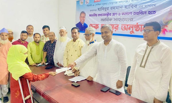 দক্ষিণ সুরমায় সিলেট ৩ আসনের সংসদ সদস্য হাবিবুর রহমান হাবিব এর মাধ্যমে প্রধানমন্ত্রীর ত্রান ও কল্যাণ তহবিল হতে অসুস্থদের মধ্যে চেক বিতরণ করা হয়েছে। সোমবার (২৫ সেপ্টেম্বর) সন্ধায় এ চেক বিতরণ করা হয়।