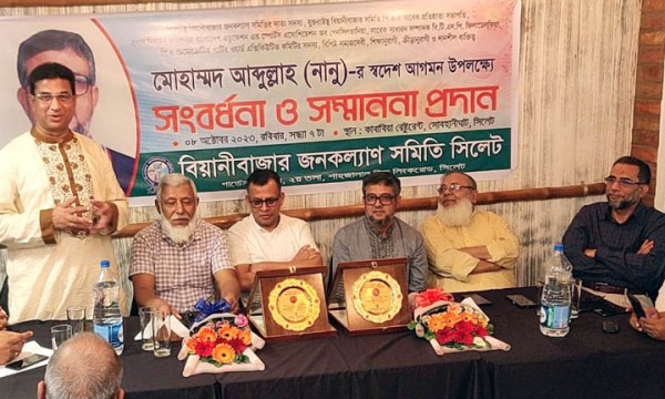 রবিবার সন্ধ্যায় নগরের সোবহানীঘাটস্থ একটি চায়নিজ রেস্টুরেন্টে যুক্তরাষ্ট্রস্থ বিয়ানীবাজার সমিতি পি.এ-র সাবেক প্রতিষ্ঠাতা সভাপতি, বিয়ানীবাজার জনকল্যাণ সমিতি সিলেট এর দাতা সদস্য, কুড়ার বাজার কলেজের দাতা সদস্য বিশিষ্ট সমাজসেবী, শিক্ষানুরাগী, ক্রীড়ানুরাগী ও দানশীল ব্যক্তিত্ব যুক্তরাষ্ট্র প্রবাসী কমিউনিটি নেতা মোহাম্মদ আব্দুল্লাহ নানুর স্বদেশ আগমন এবং বিয়ানীবাজার জনকল্যাণ সমিতি, সিলেট কোষাধ্যক্ষ মো. ছাদ উদ্দিন স্থায়ীভাবে বসবাসের জন্য যুক্তরাষ্ট্র গমন উপলক্ষ্যে সমিতি কর্তৃক সংবর্ধনা ও সম্মাননা প্রদান অনুষ্ঠানে তিনি এসব কথা বলেন।
