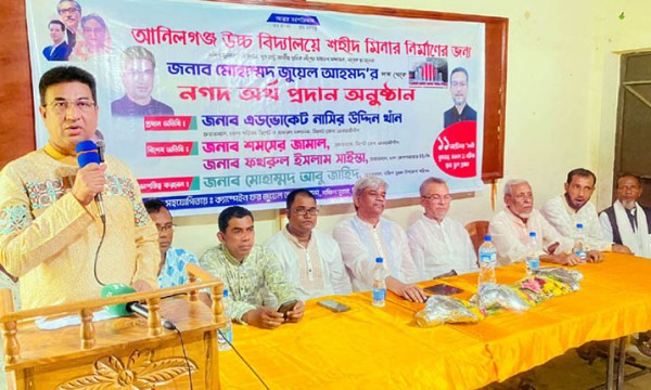 বুধবার দক্ষিণ সুরমা উপজেলার জালালপুর ইউনিয়নের আনিলগঞ্জ উচ্চ বিদ্যালয়ে আগামী উপজেলা পরিষদ নির্বাচনে চেয়ারম্যান পদে বাংলাদেশ আওয়ামী লীগের মনোনয়ন প্রত্যাশী, যুক্তরাষ্ট্র জাতীয় শ্রমিকলীগের সাধারণ সম্পাদক, মোহাম্মদ জুয়েল আহমদের পক্ষ থেকে বিদ্যালয়ে শহীদ মিনার নির্মাণের জন্য নগদ হস্তান্তর অনুষ্ঠানে প্রধান অতিথির বক্তব্যে একথাগুলো বলেন।