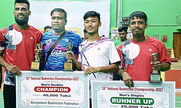 বাংলাদেশ ব্যাডমিন্টন ফেডারেশনের ব্যবস্থাপনায় ঢাকা ভেন্যুতে অনুষ্ঠিত ‘‘৩৮তম জাতীয় ব্যাডমিন্টন চ্যাম্পিয়নশিপে দেশসেরা হয়েছে সিলেট জেলা ব্যাডমিন্টন দল (পুরুষ)। এর মধ্যে দ্বৈতে চ্যাম্পিয়ন ও রানার-আপ এবং এককে রানার-আপ হয়েছে।