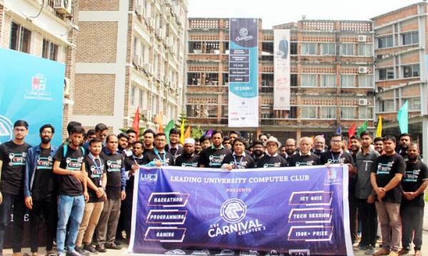 লিডিং ইউনিভার্সিটিতে সিএসই ডিপার্টমেন্টের তত্ত্বাবধানে লিডিং ইউনিভার্সিটি কম্পিউটার ক্লাব কর্তৃক আয়োজিত দুই দিনব্যাপী সিএসই কার্নিভাল চ্যাপ্টার-২ শুরু হয়েছে। শনিবার (১৪ অক্টোবর) সকালে বিশ্ববিদ্যালয়ের ভারপ্রাপ্ত উপাচার্য ও ট্রেজারার বনমালী ভৌমিক কার্নিভালের উদ্বোধন করেন। উদ্বোধনের পর সিএসই বিভাগের শিক্ষার্থীরা একটি শোভাযাত্রা ক্যাম্পাস সংলগ্ন সড়ক প্রদর্শন করেন।