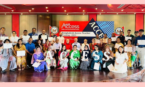 বাংলাদেশ ইংলিশ এক্সেস মাইক্রোস্কলারশিপ প্রোগ্রামের শিক্ষকদের ৩ দিন ব্যাপী প্রশিক্ষণ সম্পন্ন হয়েছে। শনিবার (১৪ অক্টোবর) বিকেলে সনদপত্র বিতরণের মধ্য দিয়ে এ প্রশিক্ষণ সমাপ্ত হয়। ইউ এস স্টেট ডিপার্টমেন্টের অর্থায়নে ঢাকাস্থ আমেরিকান দূতাবাসের সহযোগিতায় জিস্ট ইন্টারন্যাশনাল ফাউন্ডেশন শ্রীমঙ্গলের একটি অভিজাত হোটেলে এ প্রশিক্ষণ কর্মসূচী বাস্তবায়ন করে।