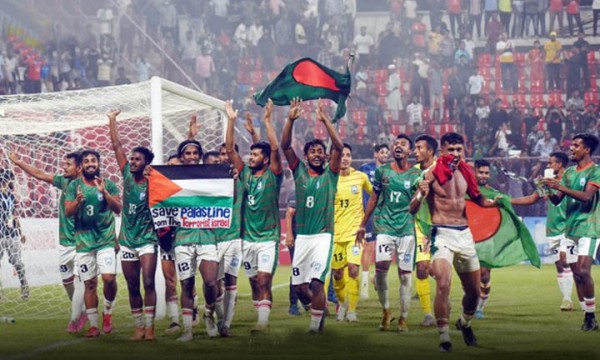 মালদ্বীপের বিপক্ষে ঘরের মাঠ বসুন্ধরা কিংস অ্যারেনায় মঙ্গলবার ২-১ গোলে জিতেছে বাংলাদেশ। ওই জয়ে বিশ্বকাপ বাছাইপর্ব রাউন্ডে উঠে গেছে লাল-সবুজের প্রতিনিধিরা।