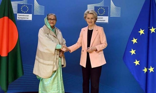 প্রধানমন্ত্রী শেখ হাসিনা ও ইউরোপীয় কমিশনের চেয়ারম্যান উরসুলা ভন ডার লেয়েন ব্রাসেলসে ইউরোপীয় কমিশনের প্রধান কার্যালয়ে বাংলাদেশ সরকার ও ইউরোপীয় বিনিয়োগ ব্যাংক (ইআইবি)’র মধ্যে ৩৫০ মিলিয়ন ইউরো অর্থায়ন চুক্তিসহ বেশ কয়েকটি চুক্তি স্বাক্ষর প্রত্যক্ষ করেন।