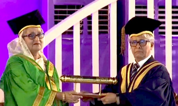 আজ রবিবার (২৯ অক্টোবর) বেলা ১১টা ৫৮ মিনিটে বিশ্ববিদ্যালয়ের কেন্দ্রীয় খেলার মাঠে অনুষ্ঠিত বিশেষ সমাবর্তনে এ ডিগ্রি প্রদান করা হয়।
