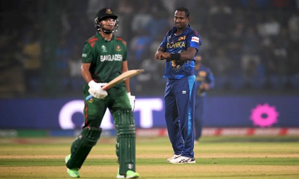 ম্যাথুজের টাইমড আউট ঘটনার পর ব্যাটিং করেছে বাংলাদেশ।
