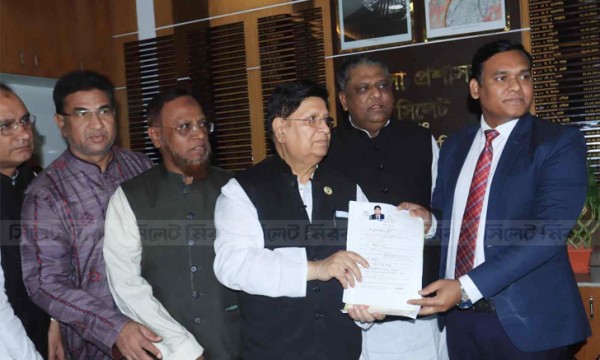 জেলা রিটানিং অফিসার ও সিলেটের জেলা প্রশাসক শেখ রাসেল হাসান এ মনোনয়নপত্র গ্রহণ করেন।