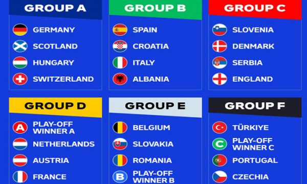২০২০ ইউরোর রানার্সআপ ইংল্যান্ড পেয়েছে ডেনমার্ক, স্লোভেনিয়া ও সার্বিয়াকে। তুলনামূলকভাবে স্বস্তিদায়ক গ্রুপ পেয়েছে ক্রিস্টিয়ানো রোনালদোর পর্তুগাল। ‘এফ’ গ্রুপে পর্তুগিজদের সঙ্গী তুরস্ক ও চেকিয়া। সঙ্গে প্লে–অফ থেকে এসে যোগ দেবে জর্জিয়া, গ্রিস, কাজাখস্তান ও লুক্সেমবার্গের একটি দল।