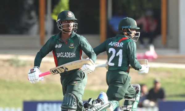 লক্ষ্য তাড়ায় বাংলাদেশ যুবাদের শুরুটা অবশ্য আশাব্যঞ্জক ছিল না। ৩৪ রানের মধ্যে ড্রেসিংরুমে ফিরে যান জিসান আলম (০), চৌধুরী মোহাম্মদ রিজওয়ান (১৩) ও দলের সেরা ব্যাটার আশিকুর রহমান শিবলি (৭)।