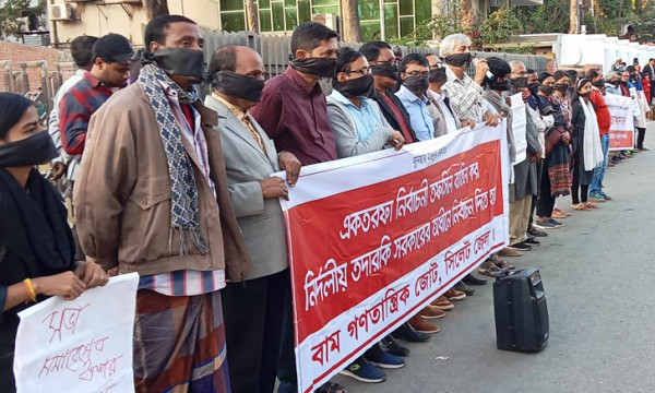 সিলেটে বাম গণতান্ত্রিক জোটের অবস্থান কর্মসূচিতে সংসদ ভেঙে তদারকি সরকারের অধীনে নতুন নির্বাচনী তফসিল ঘোষনার দাবি জানানো হয়েছে।