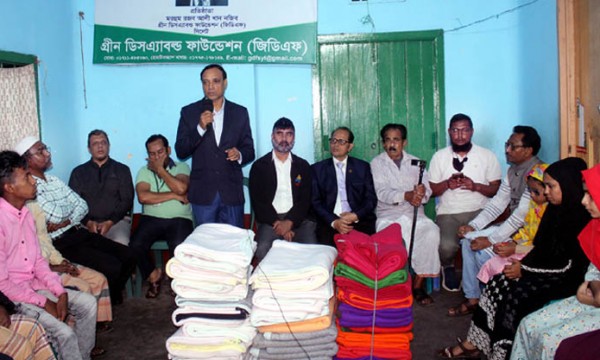 গ্রীন ডিজএ্যাবল্ড ফাউন্ডেশন (জিডিএফ)’র উদ্যোগে মার্কেন্টাইল ব্যাংক লিমিটেড এর অর্থায়নে প্রতিবন্ধীদের মধ্যে শীতবস্ত্র বিতরণ করা হয়। সোমবার বিকালে নগরীর জিন্দাবাজারস্থ জিডিএফ কার্যালয়ে অনুষ্ঠিত হয়। অনুষ্ঠানে প্রধান অতিথির বক্তব্য রাখেন সিলেট জেলা সমাজ সেবা কার্যালয়ের উপ-পরিচালক আব্দুর রফিক।