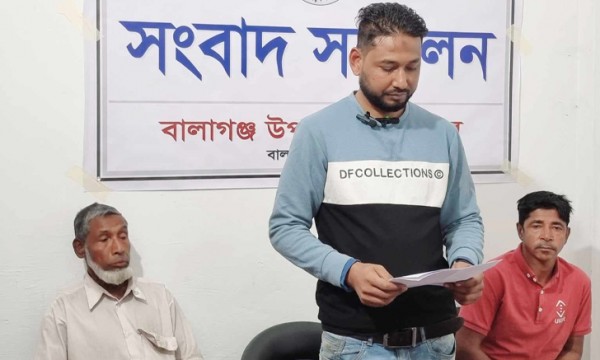 লিখিতে বক্তব্যে তিনি আরো বলেন, ‘তারা সরকার বিরোধী রাজনৈতিক মতাদর্শী এবং আমি বালাগঞ্জ উপজেলা যুবলীগের একজন সক্রীয় কর্মী হওয়ায় দলীয় কার্যক্রমে তারা আমাকে বাধা দিচ্ছে। প্রধানমন্ত্রীকে নিয়ে নানাভাবে কটুক্তি করে আসছে। লিখিত বক্তব্যে শাহ জাহেদ আহমদ অভিযোগ করে আরো বলেন, চলতি বছরের ২ফেব্রুয়ারি বালাগঞ্জের ইউএনও ও এসিল্যান্ডের কাছে লিখিত অভিযোগ দেয়ার পর বালাগঞ্জ থানার ওসি (তদন্ত) ঘটনাস্থলে গিয়ে অভিযোগের বিষয়ে সত্যতা পান। উভয় পক্ষকে সকল কাগজাদি নিয়ে থানায় ডাকেন। সেখানেও গন্যমান্য ব্যাক্তিদের মাধ্যমে নেয়া সিদ্ধান্ত অমান্য করেছে তারা। তাদের এমন অনৈতিক কর্মকান্ডে আমরা বারবার ক্ষতির সম্মুখীন হচ্ছি। অন্যদিকে আমি ও আমার পরিবারের সদস্যদের নামে মিথ্যা বানোয়াট ও সাজানো মামলায় ফাঁসানোর অপচেষ্টায় লিপ্ত রয়েছে দখলদাররা। তাদের অব্যাহত হুমকিতে আমিও আমার পরিবারের সদস্যরা জানমালের নিরাপত্ত্বা নিয়ে শঙ্কিত রয়েছি। আমাদের নিরাপত্তার বিষয়ে প্রশাসনের কাছে জোর দাবি জানাচ্ছি। সংবাদ সম্মেলনে উপস্থিত ছিলেন, গোড়াপুর গ্রামের সজন মিয়া, চরসুবিয়া গ্রামের দিলাল মিয়া ও গহরমলি গ্রামের মনু মিয়া প্রমুখ।’