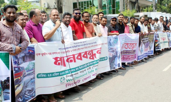 আজ বুধবার (২৪ এপ্রিল) দুপুর ১২টায় সিলেট কেন্দ্রীয় শহীদ মিনারের সমানে নিরাপদ সড়ক চাই আয়োজিত মানববন্ধন বক্তারা এ দাবি জানান।