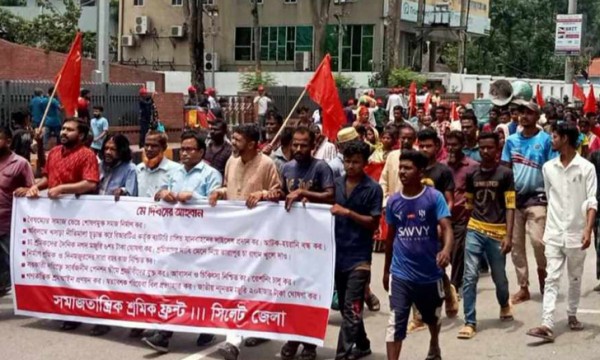 মহান মে দিবস উপলক্ষে সমাজতান্ত্রিক শ্রমিক ফ্রন্ট সিলেট জেলা শাখার লাল পতাকা মিছিল ও সমাবেশ অনুষ্ঠিত হয়। বুধবার (১ মে) সকাল সাড়ে ১১টায় নগরের আম্বরখানাস্থ সংগঠনের কার্যালয়ের সামনে জমায়েত শেষে মিছিল শুরু হয়ে গুরুত্বপূর্ণ সড়ক প্রদক্ষিণ করে সিটি পয়েন্টে গিয়ে সমাবেশে মিলিত হয়।