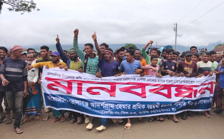 সিলেট-ভোলাগঞ্জ সড়ক অবরোধ করে বিভিন্ন দাবীতে পাথর শ্রমিক ও ব্যবসায়ীদের বিক্ষোভ মিছিল ও মানববন্ধন করেছেন এলসি পাথর শ্রমিক ও ব্যবসায়ীরা।