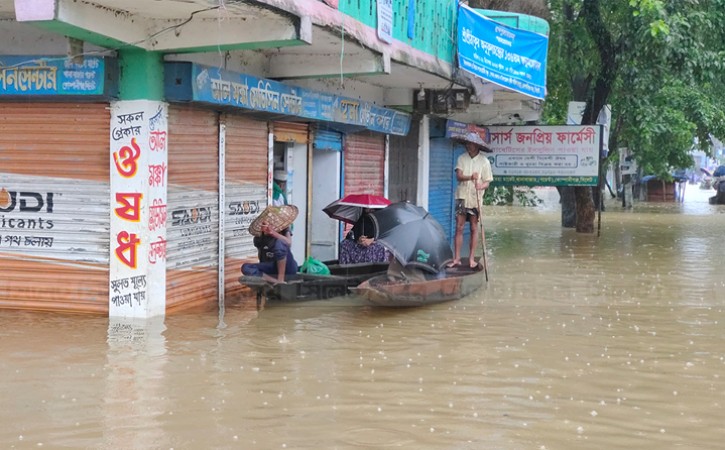 বন্যায় প্লাবিত কোম্পানীগঞ্জ উপজেলার থানাবাজার। ছবি- কবির আহমদ