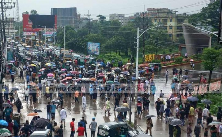 সরকারি চাকরিতে ৩০ শতাংশ মুক্তিযোদ্ধা কোটাসহ ৫৬ শতাংশ কোটা পুনর্বহালের আদেশের বিরুদ্ধে এবং ২০১৮ সালের পরিপত্র পুনর্বহালের দাবিতে বৃষ্টি উপেক্ষা করে ‘বাংলা ব্লকেড’’বাস্তবায়ন করেছেন শাহজালাল বিজ্ঞান ও প্রযুক্তি বিশ্ববিদ্যালয়ের শিক্ষার্থীরা।