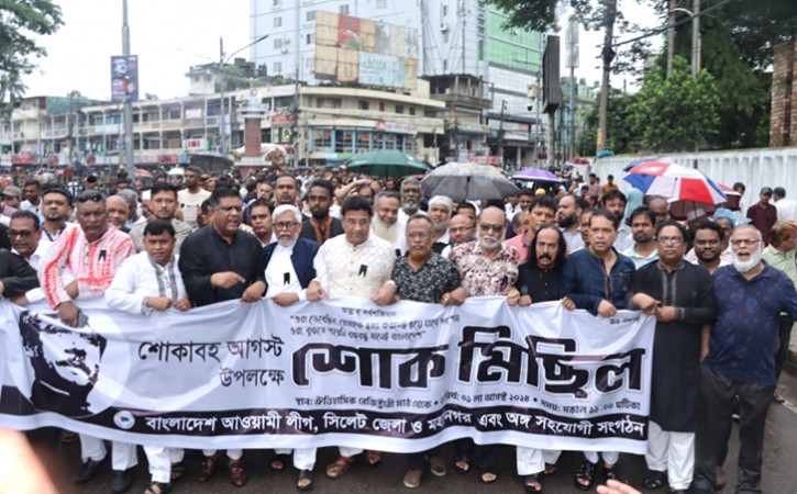 শোকাবহ আগস্ট মাসের প্রথম দিনে সিলেট নগরে বিশাল শোক মিছিল করেছে সিলেট জেলা ও মহানগর আওয়ামী লীগ এবং অঙ্গ সহযোগী সংগঠনের নেতাকর্মীরা।