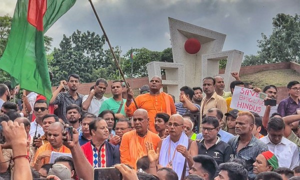 সমাবেশে ইসকন বাংলাদেশের সহ-সভাপতি ও ইসকন সিলেটের অধ্যক্ষ শ্রীমৎ ভক্তি অদ্বৈত নবদ্বীপ স্বামী মহারাজ বলেন, ‘হিন্দুদের বাড়িঘর, মন্দির, ব্যবসাপ্রতিষ্ঠানে হামলা-লুটপাট চালানো হচ্ছে। আমরাতো এ দেশেই জন্মেছি, আমরা কোথায় যাবো। ক্ষমতায় যেই আসুক আমাদের নিরাপত্তা চাই। আমরা আমাদের বাসস্থান ও ধর্মীয় স্থাপনার নিরাপত্তা চাই।’