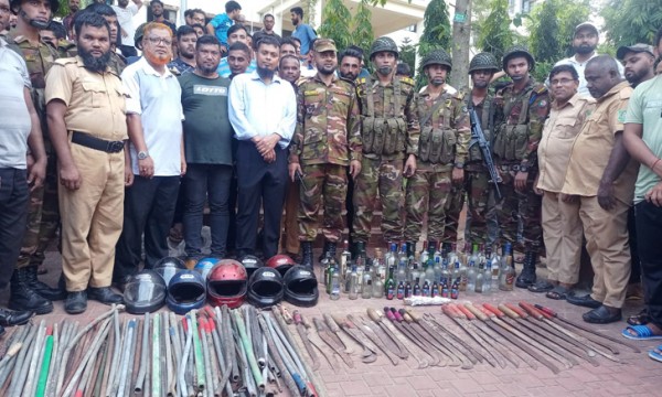 অভিযানে সামুরাই, হেলমেট, বিপুল পরিমাণ লোহার পাইপ ও নেশাসামগ্রির বোতল উদ্ধার করা হয়।