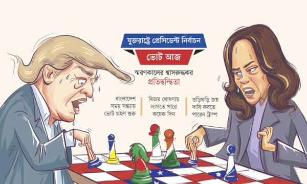 ডোনাল্ট ট্রাম্প ও কমলা হ্যারিস। কার্টুন-সমকাল