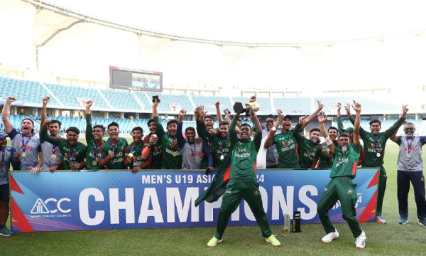 এসিসি অনূর্ধ্ব-১৯ যুব বিশ্বকাপের সেমি-ফাইনালে পাকিস্তানকে হারানোর পর ফাইনালে ভারতকে উড়িয়ে শিরোপা ধরে রাখল বাংলাদেশ। |