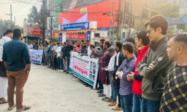 আজ মঙ্গলবার (১০ ডিসেম্বর) সিলেট ল’ কলেজের সামনে এ মানববন্ধন অনুষ্ঠিত হয়। মানববন্ধনে গুমের শিকার সকল নেতাকর্মী ও নাগরিকদের মুক্তির দাবি এবং আওয়ামী লীগ ও আইনশৃঙ্খলা রক্ষাকারী বাহিনীর নির্মম হত্যাকান্ড ও নির্যাতনের শিকার নেতাকর্মীদের নিপীড়নের ঘটনার যথাযথ বিচারের দাবিতে কেন্দ্র ঘোষিত কর্মসূচির অংশ হিসেবে ।