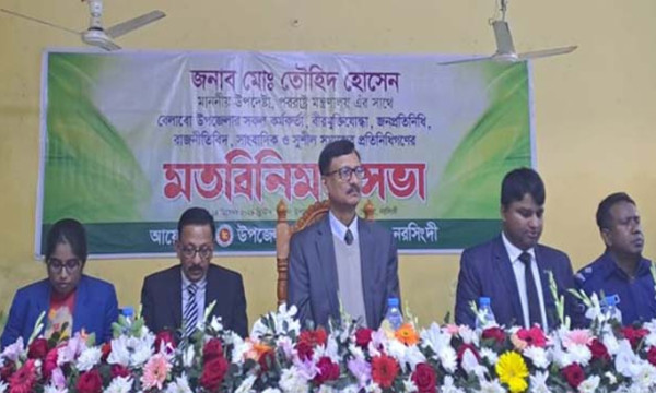 আজ শনিবার সকালে নরসিংদীর বেলাব উপজেলা প্রশাসনের আয়োজনে বীর মুক্তিযোদ্ধা, জনপ্রতিনিধি, রাজনীতিবিদ, সাংবাদিক ও সুশীল সমাজের প্রতিনিধিদের সাথে মতবিনিময় সভায় তিনি এই মন্তব্য করেন।