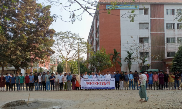 আজ রবিবার (৯ মার্চ) দুপুরে সিলেট কৃষি বিশ্ববিদ্যালয়ের লেকপাড়ে এ মানববন্ধন কর্মসূচি পালিত হয়।