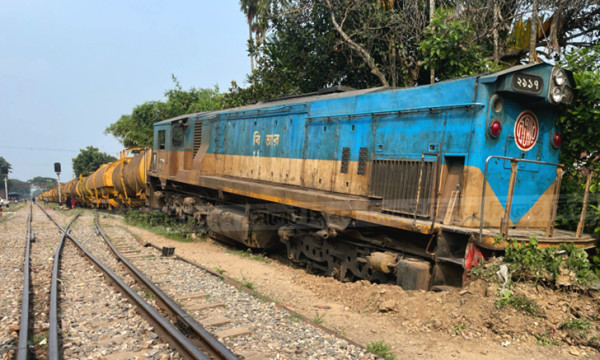 মৌলভীবাজারের শ্রীমঙ্গলে তেলবাহী একটি ট্রেন লাইনচ্যুত। ছবি- অনির্বাণ সেনগুপ্ত