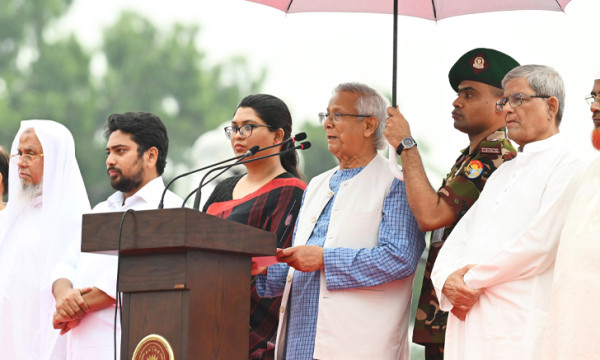 জুলাই গণ-অভ্যুত্থানের এক বছর পূর্তির দিন রাত ৮টা ২০ মিনিটে জাতির উদ্দেশে ভাষণ দেন প্রধান উপদেষ্টা। প্রধান উপদেষ্টার ভাষণ বাংলাদেশ টেলিভিশন, বিটিভি নিউজ ও বাংলাদেশ বেতার একযোগে সম্প্রচার করেছে। এর আগে আজ বিকেলে জাতীয় সংসদ ভবন এলাকায় জুলাই ঘোষণাপত্র পাঠ করেন তিনি। জাতীয় সংসদের দক্ষিণ প্লাজায় তিনি এ ঘোষণাপত্র পাঠ করেন।