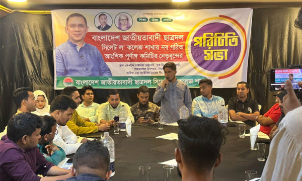 বাংলাদেশ জাতীয়তাবাদী ছাত্রদল সিলেট মহানগর শাখার আওতাধীন সিলেট ল' কলেজ ছাত্রদলের আংশিক পূর্ণাঙ্গ কমিটি পরিচিত সভা অনুষ্ঠিত হয়েছে। শুক্রবার (৩ অক্টোবর) সন্ধ্যা ৭টায় নগরীর অভিজাত একটি রেস্টুরেন্টে এই পরিচিত সভা অনুষ্ঠিত হয়।পবিত্র কোরআন তেলাওয়াতের মাধ্যমে পরিচিত সভার আনুষ্ঠানিকতা শুরু হয়।