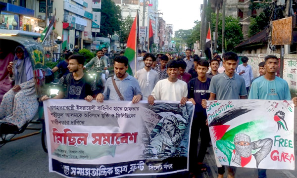 আজ শুক্রবার (১০ অক্টোবর) বিকাল ৪টায় নগরের সিলেট কেন্দ্রীয় শহীদ মিনার প্রাঙ্গণ থেকে মিছিল বের করা হয়। মিছিলটি নগরের প্রধান প্রধান সড়ক ঘুরে সিটি পয়েন্টে গিয়ে সমাবেশে মিলিত হয়।