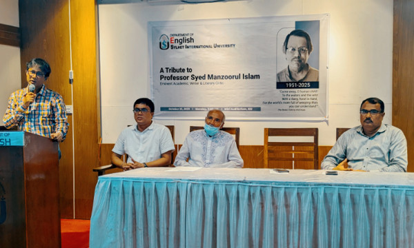 আজ সোমবার (২০ অক্টোবর) সিলেট ইন্টারন্যাশনাল ইউনিভার্সিটির মিনি অডিটোরিয়ামে ' এ ট্রিবিউট টু প্রফেসর সৈয়দ মনজুরুল ইসলাম' শিরোনামে এ অনুষ্ঠানের আয়োজন করে ইংরেজি বিভাগ।