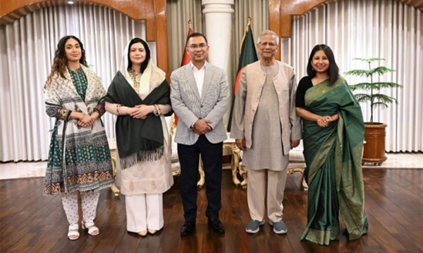 অন্তর্বর্তী সরকারের প্রধান উপদেষ্টা ড. মুহাম্মদ ইউনূসের সঙ্গে সৌজন্য সাক্ষাৎ করেছেন বিএনপির চেয়ারম্যান তারেক রহমান ও তাঁর পরিবারের সদস্যরা।