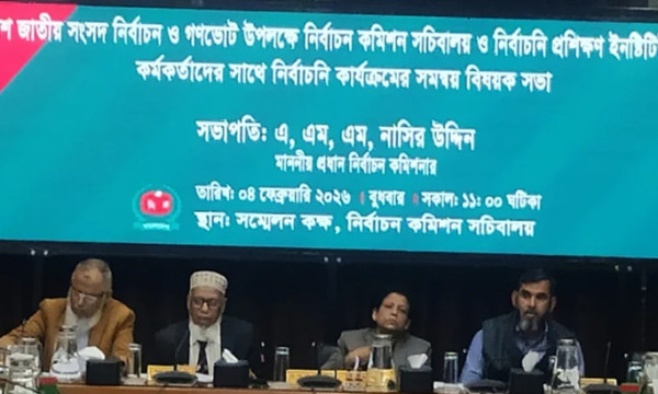 ত্রয়োদশ জাতীয় সংসদ নির্বাচন ও গণভোট উপলক্ষে নির্বাচন কমিশন (ইসি) সচিবালয় এবং নির্বাচনী প্রশিক্ষণ ইনস্টিটিউটের কর্মকর্তাদের সঙ্গে নির্বাচনী কার্যক্রমের সমন্বয় বিষয়ে একটি উচ্চপর্যায়ের সভা চলছে।